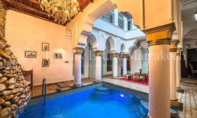 RIAD ABAKA Riad de charme avec un double patio et une jolie piscine au rez de chaussé, offre une capacité d'accueil de 25 personnes sur 12 chambres (de 12 M2 à 40 M2) dont 5 suites joliment décorées en respectant l'artisanat marocain avec une jolie hauteur sous plafond. Ce riad disposant d'une vue exceptionnelle sur toute la médina et l'atlas avec une vue sur la Koulouba, dispose de 2 accès par bab laksour et la place Djema el fna . Magnifique investissement pour ce riad avec la possibilité de s'agrandir en achetant des riads mitoyens Très bon taux d’occupation et chiffre d’affaires, excellent investissement pour ce riad niché dans le triangle d'or de la médina. A visiter sans tarder 1 854 000 euros (honoraires notaire 7%) en sus.