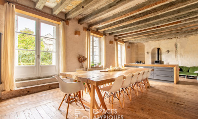 Dans le centre de Saumur, un logis avec son école et sa piscine. Depuis une rue calme à l'architecture remarquable, ancienne voie des blanchisseurs, un portail en fer forgé ouvre sur une cour plantée, autour de laquelle s'organisent le logis et l'ancienne école. La propriété est adossée aux remparts et au chemin de ronde du centre historique. Au fil des siècles, elle a été le siège d'une grande famille locale, dont les membres furent anoblis et contribuèrent à la défense de la cité lors de la Fronde. Les périodes fastes du commerce, renforcées par des alliances et mariages avantageux, ont laissé à l'édifice un riche décor peint, encore visible aujourd'hui. Le site fut vendu à la municipalité en 1890 pour devenir l'école Jules Ferry, avec des logements pour les professeurs, des classes et un réfectoire. Il fonctionna d'abord comme école pour filles, puis pour garçons, avant de jouer un rôle dans la vie des syndicats. Chaque année, lors des Journées du patrimoine, le bâtiment est mis en lumière et demeure un lieu emblématique de l'histoire ouvrière de la ville. Deux gîtes touristiques ont été aménagés aux côtés du bâtiment principal.