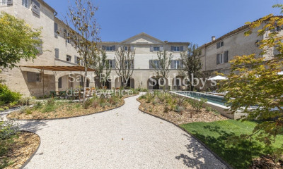 Très rare à la vente : ensemble Immobilier en plein coeur de St Remy de Provence composé de 2 immeubles dont un ancien, avec jardin, piscine et garage. Un premier hôtel particulier, majestueux, d'environ 250 m2 sur 3 niveaux, abrite actuellement des bureaux de profession libérale. De grandes pièces, de grandes fenêtres, une verrière et une grande cour, permettent une belle luminosité en plein centre ville. Prestations luxueuses. Une deuxième bâtisse en pierre abrite une maison d'habitation avec 3 chambres dont une belle suite avec dressing et terrasse, une buanderie, un bureau, un salon avec cheminée, une grande cuisine ouverte sur une terrasse abritée avec salle a manger d'été, une arrière cuisine. Fait rare, la maison offre également un beau jardin avec piscine et un appartement indépendant. L'ensemble bénéficie également d'un grand garage fermé pouvant accueillir 4 voitures, ainsi qu'un grand parking pour encore 6/8 voitures. Située à deux pas des commerces et des restaurants, sans aucune nuisance sonore, ni aucun vis à vis et avec une bonne exposition au soleil, cette demeure peut servir de résidence à une famille avec activité de profession libérale, mais aussi pour une activité de chambres d'hôtes ou d'hôtellerie de luxe. Possibilités d'extension. Les informations sur les risques auxquels ce bien est exposé sont disponibles sur le site Géorisques :