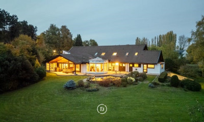 Découvrez cette villa prestigieuse, réalisée avec des matériaux de haute qualité et un niveau de finition exceptionnel, sur un domaine généreux d'un hectare. Cette propriété allie une expérience de vie luxueuse à de nombreuses possibilités. Grâce à son entrée indépendante et à son vaste espace de stationnement, elle se prête parfaitement à un bureau à domicile, une profession libérale ou une habitation kangourou, sans compromettre la confidentialité ni le confort. Composition : Rez-de-chaussée: Un hall d'entrée élégant avec vestiaire et toilettes invités mène aux espaces de vie lumineux: une cuisine entièrement équipée, une salle à manger, un séjour chaleureux et une véranda offrant une vue sur le cadre verdoyant. À ce niveau se trouvent également un local technique, une buanderie et un garage double avec espace de stockage supplémentaire. L'entrée professionnelle séparée donne accès au bureau, accompagné d'une salle d'attente et d'un espace de travail supplémentaire. Premier étage: La suite parentale comprend une chambre spacieuse, un dressing et une salle de bains privative. S'y ajoutent quatre grandes chambres d'enfants avec armoires encastrées (extensibles à six chambres), un sauna et deux salles de bains complètes. Deuxième étage: Le grenier offre un espace de rangement supplémentaire ou un potentiel d'aménagement complémentaire. Sous-sol: La cave comprend un local technique, une cave à vin et un vide sanitaire. Ref: 'SKN_PUB_7403966'