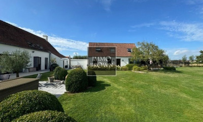Villa contemporaine (°2017) située proche du centre de Knokke. COMPOSITION: Hall d'entrée spacieux avec vestiaire et toilettes. Salon lumineux avec salon et salle à manger, cuisine ouverte entièrement équipée (induction, four à micro-ondes combiné, four à vapeur combiné, etc.). Accès à la terrasse couverte orientée sud-ouest et au jardin bien soigné. À l'étage: hall de nuit avec toilettes. Chambre spacieuse / pièce polyvalente. 3 chambres avec placards intégrés ou dressing. Dressing séparé. Salle de douche. Salle de bain avec baignoire indépendante et douche à l'italienne. Terrasse de 60m². Garage de 100m² pour 5 à 6 voitures avec 2 portes sectionnelles, chauffage au sol et pont avec fosse pour 2 voitures. Volets électriques. Domotique, alarme, chauffage au sol, caméras extérieures, climatisation, etc. prévus. Allée pour plusieurs voitures. Panneaux solaires d'une capacité de 4240 Wp fournis (conversion en pompe à chaleur possible). Ref: 'SKN_PUB_7250752'