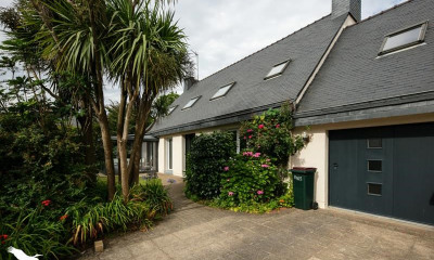 En Finistère, à moins de 100 m d'une plage de sable blanc, une villa du 19e s , dans un jardin de 1900 m² avec dépendances. À restaurer, la villa constitue l'un des plus anciens édifices de la commune. Construite en moellon, elle occupe un plan en L autour d'une cour intérieure. Sous une toiture en ardoise, l'ensemble est orienté nord-est et comprend deux ailes attenantes en pierre, qui peuvent être séparées pour en faire deux habitations. Organisées sur trois niveaux, elles se répartissent chacune en un rez-de-chaussée, un étage principal et un second étage mansardé. La façade enduite est percée de baies régulières. À l'arrière, côté jardin, les murs sont en moellon apparent et les baies sont encadrées de granit. Côté cour, chaque aile dispose de sa propre entrée. À l'arrière, un premier jardin enherbé sépare la villa des dépendances. Une grande parcelle, partiellement arborée, se trouve à l'arrière de la dépendance en pierre qui fait face à la villa. Cette partie du jardin pourrait faire l'objet d'un projet immobilier, avec une entrée indépendante déjà placée à son extrémité. Deux bâtiments annexes, également en pierre, se tiennent à l'écart, dans le prolongement de la cour. Ils peuvent servir de remise, d'atelier ou de local de rangement, selon les besoins.