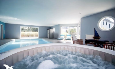 Dans la jolie charmante et prisée station balnéaire du Pouldu, cette villa balnéaire nommée la Villa Ker Cecilia a été édifiée en 1903 sur un coteau, surplombant l'océan face à l'île de Groix. Véritable joyau du patrimoine littoral de la commune, elle séduit par son architecture raffinée et harmonieuse : façades en schiste, encorbellements, tour d’escalier et toiture à croupes typique de l’époque. À l’intérieur, boiseries d’époque, plafonds moulurés, poutres apparentes et superbe escalier confèrent à chaque espace un charme rare. Le rez-de-chaussée, baigné de lumière grâce à une hauteur sous plafond de 3,40 m, s’articule autour d’un vaste hall de réception, d’un salon et d’une salle à manger s’ouvrant sur une véranda victorienne de 18 m². L’étage offre trois chambres, dont deux avec vue mer, et une salle de bains. Au deuxième étage, une chambre avec salle d’eau privative précède un belvédère abritant une pièce coup de cœur de 44 m² : ancien atelier d’artiste, voûte en berceau, cheminée sculptée et vue panoramique à 180° sur l’océan, la côte du Morbihan et l’île de Groix. Le sous-sol comprend cave et chaufferie. Le parc paysager clos abrite un studio indépendant de 35 m² et un garage de 20 m², aménagés dans l’ancienne écurie.