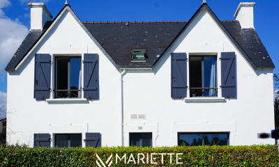 "TY TAD" Est cette chaumière bretonne rénovée avec une finesse rare à proximité du bord de mer. Dans un environnement champêtre, paisible et verdoyant, cette maison conjugue le charme authentique des pierres et de la chaume avec une rénovation haut de gamme pensée par un architecte d'intérieur. Lumière, matériaux nobles et volumes repensés créent une atmosphère chaleureuse, confortable et élégante. DPE réalisé à la fin du mois. Visite virtuelle disponible sur demande. La distribution : RDC : Entrée, cuisine indépendante aménagée et équipée, salle à manger, salon cosy avec cheminée décorative, dégagement, WC, salle d'eau avec douche à l'italienne, chambre tournée vers le jardin. Étage : Espace détente / mezzanine, trois chambres aux ambiances distinctes, salle de bains, WC indépendants. Annexes : Grand garage avec étage, allée arborée, jardin paysager, terrasse exposée sud. Ce que l'on aime : Le charme intemporel de la chaumière, la rénovation qualitative, élégante et raffinée, l'environnement naturel, calme et apaisant, les volumes chaleureux et les belles ouvertures, la proximité du bourg de Névez et des plages. Points d'intérêts : À 5 minutes du centre de Névez À 1,5km des sentiers côtiers et de Kerdruc À 8 minutes du centre de Pont-Aven À 20 minutes de Concarneau Depuis plus de 3 ans et à chaque transaction réalisée, Mariette Immobilier Conciergerie soutient la SNSM de Trévignon - Concarneau en reversant 1 % de chaque commission d'agence, afin de contribuer à leurs actions de prévention et de sauvetage en mer. (2.00 % d'honoraires TTC à la charge de l'acquéreur.)