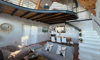 29760 - KERITY PENMARCH - Emplacement privilégié avec VUE MER pour cette élégante demeure néo-bretonne de 143 m² édifiée sur sous sol complet et une parcelle de plus de 600 m² . Entièrement rénovée, son intérieur est lumineux et chaleureux et offre : - Au 1er : Hall d'entrée, double salon exposé Sud, séjour, cuisine aménagée et équipée ouvrant sur terrasse bois exposée plein Sud avec sa vue mer, chambre, une salle de douches avec toilettes, toilettes séparés. - A l'étage : quatre belles chambres dont 2 avec vue mer, salle de douches avec WC, bureau. Deux garages avec espace chaufferie et buanderie vous permettront d'y garer véhicules et d'y stocker votre matériel de loisirs. Les plages, le port de Kérity et la place du marché accessibles à pied ! Le terrain arboré est clos et sécurisé par un portail coulissant électrique. Convient tant en résidence principale que secondaire, la demeure familiale par excellence ! Ne passez pas à côté de cette opportunité !