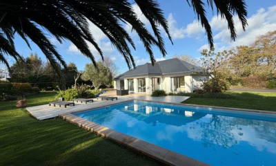 PLOMEUR (29120) – LONGÈRE BRETONNE – 164 m² – 2 GÎTES – TERRAIN 968 m² – PISCINE CHAUFFÉE effiCity vous présente cette authentique longère bretonne de 1890, entièrement restaurée et agrandie, idéalement située en pleine nature et à seulement 9 minutes de la plage de La Torche. Implantée sur un terrain clos et paysagé de 968 m², sans aucun vis-à-vis, elle offre un cadre de vie chaleureux, intime et préservé. La maison principale se compose d'une vaste pièce à vivre équipée d'un poêle à bois, ainsi que d'une grande cuisine aménagée avec îlot central, bénéficiant elle aussi d'un accès direct au jardin. Un bureau situé en rez-de-chaussée, pouvant aisément devenir une chambre d'appoint, complète ce niveau. L'étage, accessible depuis le séjour, accueille deux chambres, une grande salle de bains avec WC, baignoire et douche, ainsi qu'un espace dégagement pouvant servir de bureau. Un dressing indépendant vient parfaire cet étage. Depuis un couloir équipé de rangements et d'un WC, accessible depuis la cuisine, on accède à la seconde partie de la longère, orientée à l'ouest, et aménagée en deux gîtes. Le rez-de-chaussée comprend une salle de jeux actuellement utilisée comme salle de billard. À l'étage, deux chambres, chacune dotée de sa propre salle d'eau avec WC, permettent d'envisager divers usages. Cet ensemble bénéficie d'un accès totalement indépendant depuis le jardin, tout en restant relié à la maison principale, offrant une grande polyvalence : accueil familial, extension de l'espace de vie ou activité de chambres d'hôtes. Les extérieurs sont particulièrement soignés. La piscine chauffée de 4 × 7 mètres, profonde de 1,50 m et encore sous garantie décennale, s'intègre harmonieusement dans le jardin arboré. Plusieurs terrasses permettent de profiter du soleil tout au long de la journée. Un grand garage double de 35 m² avec point d'eau, une buanderie et une cave à vin complètent l'ensemble. Cette longère séduit par son charme breton, la qualité de sa rénovation et ses nombreuses possibilités d'usage, le tout dans un environnement naturel calme, à proximité immédiate des plages du Pays Bigouden. La taxe foncière s'élève à 1 182 euros. Les informations sur les risques auxquels ce bien est exposé sont disponibles sur le site Georisque : georisques. gouv. fr Aude Pichon - EI - est Agent Commercial mandataire en immobilier, immatriculé au Registre Spécial des Agents Commerciaux du Tribunal de Commerce de Quimper sous le n°918597683. Siège social du mandant : effiCity, 48 avenue de Villiers - 75017 PARIS - Société par Actions Simplifiée, société au capital de 132 373,05 euros, immatriculée au RCS Paris 497 617 746 et titulaire de la Carte professionnelle CPI 7501 2015 000 002 025 - CCI Paris IDF - Caisse de Garantie : GALIAN Assurances 89 rue de la Boétie 75008 Paris