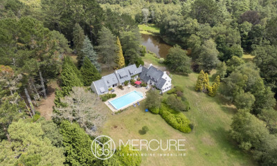 À seulement dix minutes du cœur vibrant de Quimper et quinze minutes des plages, cette élégante maison d'architecte offre le privilège rare d'une vie de campagne au seuil de la ville. Nichée dans un parc paysager d'un hectare, traversé par un charmant cours d'eau, la propriété déploie un décor bucolique empreint de sérénité. Le murmure de l'eau, les reflets changeants de la lumière et la végétation soigneusement composée créent une atmosphère de douceur et d'harmonie, véritable parenthèse de nature aux portes de la cité. L'entrée s'ouvre sur un vaste hall menant à un lumineux espace de réception agrémenté d'une cheminée en marbre. Cette pièce de vie s'étend vers une terrasse panoramique de 40 m², suspendue au-dessus du parc — un véritable belvédère sur la nature où l'on prend plaisir à partager ou simplement contempler le paysage. Une cuisine ouverte en chêne allie authenticité et convivialité, tandis que deux chambres s'ouvrent directement sur la terrasse, offrant un réveil au rythme des oiseaux et du ruisseau. Un vaste bureau, modulable en chambre, et une salle de bains équipée d'une baignoire balnéo complètent ce niveau. À l'étage, deux chambres supplémentaires, un espace jeux ou détente, un bureau pour le télétravail et une salle d'eau contemporaine prolongent cette impression de confort et de lumière. En rez-de-jardin, l'espace bien-être de 70 m² invite à la relaxation avec spa et piscine intérieure chauffée, ouverte sur une terrasse en granit bordant le cours d'eau — un coin de paradis pour se ressourcer toute l'année. Prestations actuelles (pompe à chaleur de 2022, double garage, atelier, cellier, sanitaires) et volumes généreux s'unissent ici dans une parfaite harmonie entre confort moderne et nature préservée. Rare sur le marché, cette demeure séduit par son équilibre unique : un art de vivre entre ville et campagne, à quelques minutes seulement du centre de Quimper et des rivages du Finistère Sud. Prix de vente honoraires inclus : 799 000 euros Honoraires charge acquéreur Honoraires : 3.77 % TTC du prix hors honoraires Prix de vente hors honoraires : 770 000 euros Classe énergie : C Classe climat : A Montant estimé des dépenses annuelles d'énergie pour un usage standard : entre 1 920 euros et 2 660 euros par an. Prix indexés au 1er janvier 2021. Les informations sur les risques auxquels ce bien est exposé sont disponibles sur le site Géorisques :