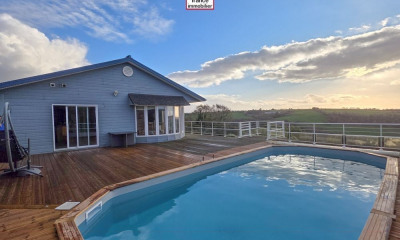Implantée dans un environnement naturel remarquable à Rosnoën, cette maison contemporaine d'architecte développe environ 220 m² habitables au coeur d'un terrain paysager d'environ 3 000 m², en position dominante avec une vue dégagée et panoramique sur la vallée, les plaines environnantes et la rivière de l'aulne, dont la présence accompagne le paysage jusqu'au belvédère. Édifiée en ossature bois et enrichie par une extension contemporaine, cette propriété conjugue avec justesse immobilier de prestige et immobilier atypique, portée par une architecture sobre et élégante mêlant bardage bois, zinc et volumes horizontaux. Les extérieurs s'organisent autour de plusieurs terrasses en bois, d'un patio intimiste et d'un vaste jardin ouvert sur un décor naturel changeant au fil des saisons, sans vis-à-vis, dans une atmosphère paisible et préservée. Le rez-de-chaussée accueille des espaces de vie généreux et baignés de lumière, organisés autour d'un séjour aux volumes spectaculaires. La cuisine ouverte, fonctionnelle et conviviale, dialogue naturellement avec la salle à manger et le salon, largement ouverts sur l'extérieur grâce à de grandes baies vitrées cadrant le panorama verdoyant et la ligne d'eau en contrebas. Les matériaux choisis béton ciré, bois, verrières atelier, soulignent l'identité architecturale et contemporaine du lieu. Ce niveau propose également une chambre de plain-pied ainsi qu'un espace nuit dédié aux enfants comprenant plusieurs chambres et une salle de bain. Le patio, accessible depuis le séjour et une chambre, constitue un espace extérieur protégé, véritable prolongement de la maison, propice aux moments de détente à l'abri des regards. À l'étage, une mezzanine ouverte, lumineuse et polyvalente, dessert une suite parentale indépendante, composée d'une chambre, d'un dressing, d'une salle d'eau et d'un accès direct à une terrasse panoramique, offrant une lecture privilégiée du paysage, entre ciel, nature et étendue d'eau. Les extérieurs prolongent pleinement l'expérience intérieure. Les terrasses en bois accompagnent les différents temps de la journée, tandis que le jardin, en pente douce, s'ouvre largement sur un environnement naturel d'une grande quiétude. Les chemins de promenade à proximité immédiate invitent à la découverte des alentours, tandis que la rivière, accessible aisément depuis la maison, permet la pratique d'activités nautiques telles que le kayak ou le paddle, renforçant un art de vivre tourné vers l'extérieur. Le cadre est calme, verdoyant et résidentiel, tout en bénéficiant d'une proximité immédiate des commerces de première nécessité, accessibles en quelques minutes à pied. Singulière par son écriture architecturale, sa vue largement ouverte sur le paysage, son immersion dans la nature et la qualité de ses volumes, cette maison atypique incarne une approche contemporaine de l'habitat, pensée pour une qualité de vie durable et inspirante. Une propriété rare, idéale en résidence principale ou secondaire, où chaque espace a été conçu pour créer une harmonie constante entre intérieur, horizon et nature environnante. Classe énergie : B / Classe climat : A. Montant estimé des dépenses annuelles d'énergie pour un usage standard : entre 1540 € et 2150 € par an. Prix moyens des énergies indexés au 1er janvier 2021 (abonnements compris). Les informations sur les risques auxquels ce bien est exposé sont disponibles sur le site Géorisques Contact : Laurent RSAC: 852199579 BREST Honoraires de l'agence : 5% TTC à la charge du vendeur pour les biens à plus de 200.000 €. Forfait 10.000 € TTC à la charge du vendeur pour les biens à moins de 200.000 €. Laurent GAVESTON (EI) Agent Commercial - Numéro RSAC : 852 199 579 - BREST.