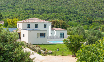 Si vous cheminez le long de la vallée de la Cèze, faites-donc une halte dans un joli village au tempérament provençal qui a su conserver son authenticité son histoire et son patrimoine, un bourg paisible. Le rythme d'un village rural offrant l'essentiel pour une qualité de vie confortable et agréable. Partage et convivialité sont au rendez-vous, évasion et sérénité au milieu des vignes, de la garrigue, des oliviers, de la forêt de Valbonne et des loisirs offerts par la rivière. Cette très attachante propriété, située sur les hauteurs, profite d'un emplacement exceptionnel et d'une vue panoramique sur la vallée ! Un jardin de 2200m2 bordé de terrasses, planté de nombreuses essences méditerranéennes coiffées d'un chêne magnifique plus que centenaire et illuminé d'un judicieux réseau d'éclairages nocturnes. Cet Eden clos et paysagé, sans aucun vis à vis, se dote d'une piscine de 10x5m équipée d'un volet roulant de sécurité et d'un terrain de boule indispensable dans le Sud de la France ! Bénéficiant d'une implantation astucieuse et opportune, cette maison d'architecte offre de très beaux volumes avec 225m2 de surface habitable composée d'une vaste pièce à vivre très lumineuse de près de 100m2 environ et de 5 chambres. Un agencement adjacent profite de toilettes invités avec lave-mains, d'un espace penderie et d'une entrée secondaire. Exposée plein sud, la pièce à vivre climatisée, surplombée d'une large mezzanine, se scinde en trois espaces. Une cuisine équipée et meublée de très belle facture avec plan de travail en granit et véranda. A l'opposé, le salon avec une majestueuse cheminée centrale et entre ces deux volumes une salle à manger bénéficiant d'un éclairage et d'une vue exceptionnels. Une mezzanine de belle dimension surplombe en partie le salon. Accessible par un très bel escalier en orme massif, elle dispose d'un bureau, d'un salon télévision et d'une chambre d'appoint. Deux climatisations (froid seulement) ont été installées à ce niveau. L'espace nuit quant à lui est bien indépendant, il offre 5 chambres dont trois de plain- pied, suite parentale de très belle taille comprise avec grand dressing et salle de bains (douche et baignoire balnéo). Une seconde suite au même niveau avec douche, suivie d'une troisième chambre, buanderie et toilettes séparées. Cellier/buanderie. A l'étage, deux chambres ayant fait récemment l'objet d'aménagement par une architecte d'intérieur afin d'optimiser l'espace. Salle d'eau et toilettes séparées. Un grand sous-sol permet l'accès à plusieurs caves avec l'opportunité d'une intervention facile si nécessaire sur les installations électriques ou de plomberie. Accès par un portail automatique avec visiophone - adoucisseur d'eau récent (2023) - eau de ville mais également un forage qui peut à sa guise alimenter la maison et le jardin avec son arrosage automatique. Fibre optique. Des transformations importantes ont été réalisées récemment (depuis 2021), d'une part pour l'entretien, par exemple au niveau électrique, de la plomberie, de la toiture et des façades, et de la piscine (installation d'une membrane armée en remplacement de l'ancien liner, remise à niveau de la filtration, installation d'une douche solaire ...), mais aussi du jardin (pelouse et végétation) ; d'autre part, grâce à une architecte d'intérieur, pour une restructuration des espaces afin d'en rationaliser et optimiser l'utilisation, et la création d'agencements sur mesure. Cette propriété est une perle dans un écrin par la qualité de son agencement et des matériaux employés, la beauté des espaces naturels l'environnant, la capacité à se poser dans l'un des nombreux coins du jardin et vivre selon l'humeur au rythme des saisons. Une propriété de caractère à découvrir ! Honoraires à charge du vendeur. Une propriété sélectionnée en exclusivité par Botella, l'Immobilier depuis 1989. Référence 830 BF.