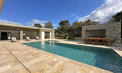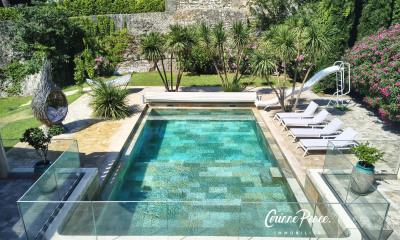 A Nîmes, dans un cadre enchanteur se cache ce petit bijoux avec une vue dégagée et sans aucun vis à vis. L'agence Corinne Ponce immobilier vous présente cette sublime villa d'environ 187 m² de type 6 avec son mazet d'environ 45 m² de type 2 entièrement rénové sur une très belle parcelle arborée de 2000 m² avec piscine. Très agréable à vivre la villa et largement orientée sur les extérieurs et sur sa terrasse avec pergola bioclimatique. Cette maison très lumineuse avec de belles ouvertures vous offre un séjour cocooning avec son poêle à pellet, une cuisine ouverte toute équipée et sa salle à manger. Une suite parentale avec sa salle de bain, trois grandes chambres, une salle d'eau, un bureau et un dressing. Nous sommes aussi sous le charme du mazet totalement indépendante qui se compose d'une pièce de vie avec cuisine ouverte, une chambre et une salle d'eau. Le jardin offre différents espaces de détentes avec ses terrasses zen et sa piscine avec une vue sur la nature. Paradisiaque, coup de coeur assuré !