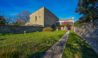 Exclusivité - En plein coeur du village d'Uchaud, situé à 30 minutes de Montpellier et 20 minutes de Nîmes, découvrez cette magnifique ancienne bergerie de 173 m² entièrement rénovée en 2012, édifiée sur une parcelle de 591 m² accompagnée d'un immeuble de rapport totalement indépendant composé de trois appartements situé en bout de parcelle, le bien parfait mêlant résidence principale haut de gamme et investissement. Cette propriété au charme fou vous dévoilera peu à peu ses secrets, ce qui en fait un bien particulièrement spécial. Tout d'abord, un portail de garage motorisé vous mènera sur une allée pavée sous un porche couvert vous permettant de stationner jusqu'à 4 véhicules. Par la suite, vous découvrirez un magnifique jardin clos, arboré et avec piscine d'environ 150 m² sans aucun vis-à-vis. Poolhouse, terrasse en bois et carrelage, coin pelousé, olivier, cactus, yucca, palmier .. Un véritable jardin méditerranéen parfaitement entretenu. Vous pénètrerez ensuite par un petit patio à la sévillane directement dans la magnifique bergerie aux pierres apparentes entièrement rénovée avec goût par les propriétaires actuels. Le rez-de-chaussée se compose d'une entrée donnant accès à la buanderie, un premier toilette séparé ainsi que la magnifique pièce de vie avec cuisine US ouverte de 65 m². Très belle hauteur sous plafond, menuiseries sur mesure, vue sur les passerelles intérieures, cette pièce au style loft offre tous les atouts pour vous séduire. Enfin, vous découvrirez la suite parentale de 26 m² avec dressing et salle de bain avec baignoire et douche. A l'étage, deux chambres, une salle d'eau avec wc ainsi qu'une grande pièce aujourd'hui agencée en bureau/salle de jeux de 29 m², pouvant être aménagée en une très grande chambre ou deux chambres, à la convenance de chacun. En fond de parcelle, un immeuble de rapport en R+1 composé de trois appartements vient compléter la propriété, tout en restant totalement indépendant de la maison principale - idéal pour de la location ou un projet multigénérationnel. En rez-de-chaussée, vous découvrirez un appartement T2 de 59,12 m² entièrement rénové cette année, avec son petit patio extérieur. Actuellement libre d'occupant suite à la rénovation. A l'étage, deux autres appartements T2, l'un de 36,69 m², l'autre de 55,51 m², tous deux loués. Les deux appartements, après congés pour vente donné, pourront être libres, à la demande, à partir de juin et d'août 2026. Les trois appartements présentent un DPE individuel en C & A. Cet immeuble en très bon état est entièrement indépendant, aucun vis-à-vis ni servitudes donnant sur la maison. Pas de places de stationnements. Rapport locatif estimé : 2000 euros / mois HC. Taxe foncière de l'ensemble de la propriété : 3 958 euros /an Venez découvrir ce magnifique bien, vous permettant à la fois d'acquérir votre résidence principale de rêve, tout en profitant d'un investissement locatif clé en main ! Qoridor, l'agence immobilière nouvelle génération, titulaire de la carte professionnelle N° CPI34022023000000010. Honoraires à la charge du vendeur. Classe énergie B, Classe climat A Montant moyen estimé des dépenses annuelles d'énergie pour un usage standard, établi à partir des prix de l'énergie de l'année 2021 : entre 1110.00 et 1570.00 euros. Les informations sur les risques auxquels ce bien est exposé sont disponibles sur le site Géorisques : georisques.gouv.fr.