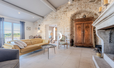Nous sommes ravis de vous présenter cette magnifique propriété, un mas de village traditionnel bénéficiant d'une vue dominante sur la campagne et d'une rénovation soignée alliant un grand confort et le charme de l'ancien. Imaginez-vous profiter d'une soirée estivale sur la terrasse aménagée de 1300m2 parfaitement clos, agrémentée d'une volumineuse piscine étincelante à forme libre (12x7m). Cette piscine faïencée au chlore et à débordement est chauffée et dispose d'un jacuzzi, un espace cuisine d'été (30m2) et une grande terrasse couverte de 40m2 offre des soirées conviviales. Les espaces de vie se prolongent par une large terrasse panoramique couverte (27m2). Vous y trouverez un large salon climatisé avec cheminée monumentale de 60m2, une cuisine élégante avec plan de travail en pierre naturelle (30m2) et une salle à manger chaleureuse avec cheminée (26m2). Les espaces nuits comprennent une grande suite de plus de 35m2 avec dressing et une large salle d'eau en travertin avec cabine Sauna pour deux personnes et toilettes. Ensuite, une deuxième chambre et une troisième chambre : grand dortoir (24m2) avec salle d'eau et toilettes. Au total, une surface habitable rénovée de 211m2 avec des possibilités d'extension dans les dépendances. Côté dépendances : il existe des caves voûtées et un atelier pour environ 100m2 ainsi que deux greniers pouvant faire l'objet d'un aménagement supplémentaire pour environ 60m2. Mais également un bâtiment indépendant pouvant abriter plusieurs véhicules. Accès par deux portails automatiques. Chauffage récent par pompe à chaleur et panneaux solaires. Chauffe eau thermodynamique. Puits et forage. Fibre. Profitez d'un barbecue entre amis dans l'espace cuisine d'été ou détendez-vous dans le jacuzzi après une longue journée. Un lieu pouvant constituer une grande maison de famille avec des possibilités de rentabilité. Les propriétaires actuels ont adoré les soirées conviviales sur la terrasse. 25km à l'ouest d'Uzès. Cette propriété sélectionnée par Botella, L'Immobilier depuis 1989, saura vous séduire. Référence : 2848