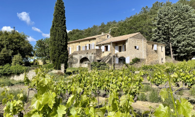 Dans un écrin de verdure, à l'écart de l'agitation et du stress de nos métropoles, mais suffisamment proche des commodités, tel un îlot dans la garrigue, en zone Natura 2000, cette propriété d'exception se love au cœur de 353 hectares essentiellement boisés dont 15 hectares de truffiers. L'endroit de ce décor enchanteur, c'est la qualité de vie que l'on ressent immédiatement, qualité de vie que rien ne vient perturber. Si ce lieu est tendrement sauvage, il est facilement joignable par un accès routier ou bien encore par hélicoptère. Un lieu atypique qui délivre une aura apaisante et propice à la rêverie et à la méditation. L'envers du décor, c'est la découverte de cette rénovation soignée conçue et réalisée par un décorateur de renommée et des maîtres artisans ! Constituée de plusieurs bâtiments dont un logement de gardien, aux façades en pierres repointées d'un ton tendre et naturel, elle développe environ 915m² de surface totale et se vend meublée et équipée. Un puits accompagne le potager et la piscine de 12x6m en marbre avec jacuzzi et bassin à contre nage bordée par un appartement privatif et un boulodrome clos de murs en pierres. L'alimentation en eau de ville répond à toute consommation d'eau (puits et citerne en complément). Le chauffage est assuré par des cheminées et quatre chaudières au gaz, quant à l'eau chaude des panneaux solaires desservent la piscine et la maison du gardien, le solde de la propriété étant alimenté par les chaudières. L'assainissement est constitué de deux fosses septiques et leur réseau d'épandage. Ce lieu sauvageon présente une zone d'intérêt biologique avec maison troglodyte, avens et lac souterrain. Une propriété à forte personnalité pour les amateurs de nature et de quiétude ! Un bien rare, sélectionné par Botella Immobilier. Les informations sur les risques auxquels ce bien est exposé sont disponibles sur le site Géorisques. Les honoraires sont à la charge du vendeur. Au plaisir d'échanger sur votre projet. Ref 2817