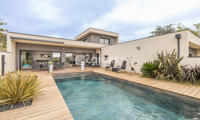 MILLENIUM IMMOBILIER vend une villa de 253 m² de plain-pied, construite en 2017 sur vide sanitaire, avec un terrain attenant clos et arboré de 2 212 m², située sur les hauteurs de DEYME (31450). Cette résidence contemporaine récente offre un cadre de vie unique avec une vue sur les coteaux et les Pyrénées, elle allie confort moderne et volumes généreux. Pensée pour profiter pleinement de l'extérieur, cette propriété dispose d'une vaste terrasse en bois composite de 122 m², accueillant une superbe piscine au sel (12*5) avec rideau immergé, un pool-house avec une salle d'eau et un WC, le tout face un panorama d'exception. L'intérieur, baigné de lumière grâce à la grande baie vitrée à galandage, dévoile un espace de vie de 80 m² réunissant un salon chaleureux avec cheminée bioéthanol, une cuisine aménagée et entièrement équipée et un cellier. La suite parentale de 35 m² dispose d'un dressing, d'une salle d'eau, de toilettes privées et d'un accès direct à la terrasse. Trois autres chambres (16 à 18 m²), chacune avec placards, salle d'eau et WC, garantissent confort et intimité à chaque occupant. Un bureau de 17 m² avec vue, une buanderie aménagée et équipée de 14 m², un garage de 61 m² et 4 places de parking extérieures complètent ce bien d'exception. Les équipements incluent domotique, système d'alarme connecté, panneaux photovoltaïques, store banne 9m, système de chauffage par le sol combiné à une pompe à chaleur Air/Eau. Contactez-nous dès aujourd'hui pour une visite privée. Les informations sur les risques auxquels ce bien est exposé sont disponibles sur le site Géorisques : N'hésitez pas à contacter votre agence immobilière MILLENIUM IMMOBILIER pour plus de renseignements sur cette maison en vente à DEYME.