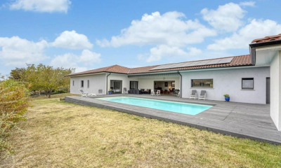 Offrez-vous une expérience de vie paisible dans cette villa alliant esthétisme et confort moderne, idéalement située sur les hauteurs de Deyme. Construite en 2019, cette demeure bénéficie de prestations de qualité et d'une construction soignée. Entièrement sans vis-à-vis, l'espace extérieur est conçu pour accueillir vos moments de convivialité ou vos instants de détente en toute tranquillité. Elle se compose comme suit : une entrée avec placard qui mène à un vaste séjour exposé plein sud, baigné de lumière naturelle et donnant sur la piscine. La cuisine ouverte, aménagée et entièrement équipée, est idéale pour les amateurs de gastronomie. Dans la continuité, vous découvrirez trois chambres, une salle de bain avec douche, double vasque et WC séparés. À l'étage, une somptueuse suite parentale panoramique avec dressing et salle de bain complète (baignoire balnéo, douche, double vasque, WC) vous attend. Cette suite offre un accès direct aux toits-terrasses aménageables, des espaces extérieurs uniques où profiter de moments privilégiés en plein air. Le sous-sol/garage fermé de grande capacité inclut une buanderie et une salle des machines complète cette propriété. L'espace extérieur, quant à lui, se distingue par une superbe piscine en carrelage esprit balinais. La vaste terrasse qui l'entoure, avec son salon enterré sur mesure, crée une atmosphère idéale pour se détendre et recevoir. La terrasse se prolonge vers un charmant jardin, parfait pour un espace vert apaisant, les jeux d'enfants, ou l'aménagement d'un coin potager. Le plus ? Un appartement T2 indépendant complète cette villa d'exception. Avec sa propre entrée, il offre diverses possibilités : héberger des invités, créer un espace privé pour des enfants devenus grands, accueillir un parent, ou envisager une location pour un revenu complémentaire. Envie d'en voir plus ? Visitez ce bien virtuellement ! (3.53 % d'honoraires TTC à la charge de l'acquéreur.)