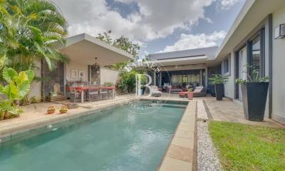 Cette belle villa de plain-pied, entièrement meublée, combine élégance et grand confort. Sur un terrain de 2 002 m², la maison offre 426 m² de surface habitable. Dès l'entrée, vous découvrirez une grande vue dégagée sur l'immense piscine et le golf. L’intérieur se compose d'un grand salon lumineux, d’une superbe cuisine ouverte équipée d’appareils haut de gamme (Gaggenau et Bora), avec un bar Minotti venu d’Italie. Vous trouverez aussi une salle TV, une arrière-cuisine, une buanderie, ainsi qu’une cuisine extérieure de 25 m². La villa dispose d'une grande suite parentale avec une magnifique salle de bains, ainsi que de trois autres chambres, chacune avec leur propre salle de bains et un accès direct au jardin. Il y a aussi un joli bureau donnant sur une terrasse équipée d'un jacuzzi et d'un coin détente. La terrasse extérieure fait 224 m², dont 128 m² sous pergola, parfait pour profiter du plein air autour de la piscine de 30 mètres de long. Le jardin est soigneusement aménagé, avec des arbres fruitiers et plusieurs potagers. Cette villa est unique grâce à la qualité exceptionnelle de ses matériaux. Un véritable coin de paradis sans aucun vis-à-vis.