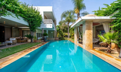 Au cœur de la Palmeraie de Marrakech, VANEAU MAROC, agence immobilière à Marrakech, vous présente un magnifique palais à vendre. Érigé sur 4 hectares de terrain, dont 12 000m2 encore vierges à développer, cette propriété bénéficie d'une situation idéale, en plein cœur de la Palmeraie de Marrakech, dans une zone urbaine, à proximité du Palais Ronsard. Le domaine se compose de 6 villas indépendantes, chacune comprenant 4 suites : une au rez-de-chaussée et trois à l'étage, avec la possibilité d'en aménager une cinquième. Ce palais à vendre est parfait pour un investisseur ou une société événementielle souhaitant organiser des événements ou gérer une maison d'hôtes. Il offre un énorme potentiel de développement. Tous nos biens sont vendus avec titre de propriété. N'hésitez pas à prendre contact dès maintenant avec notre agence immobilière VANEAU MAROC afin de planifier une visite de cette propriété.
