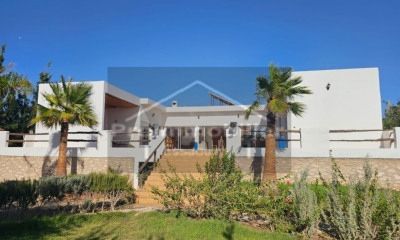 Belle maison style contemporain avec belle vue panoramique sur la campagne de moulay bouzerktoune, 28km d'Essaouira. La maison entourée d'un beau jardin arboré et clôturé d'une superficie de 10000m². La maison plein pied dispose d'une belle entrée avec un salon TV qui a une vue sur la campagne communiquée avec un coin salle à manger et une cuisine ouverte équipée avec tout l'électroménager qui donne sur une terrasse. La maison contient trois chambres avec deux salles de bains. A l'extérieure il y a un jardin avec une piscine de 4m x 2m. Une annexe de 100 m² sans meuble contient deux chambres dont une du gardien et un salon. La maison dispose d'une citerne d'eau et d'un raccordement d'eau. Espace stationnement , maison à vendre meublée sauf objets personnels.