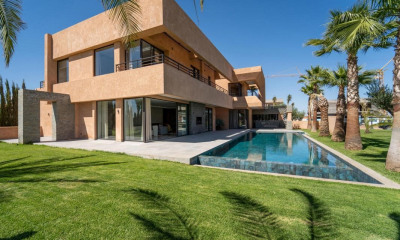 Située à proximité de la route de Ouarzazate, non loin de l'Ecole Américaine et à quelques minutes des trois principaux parcours de golf et du centre-ville, cette villa de plain-pied de ± 750 m² est implantée dans un jardin paysagé de ± 4800 m². Entièrement rénovée en 2021, la villa principale est dotée d'un spacieux espace de vie avec cheminée, un petit salon d'accueil, un coin bibliothèque, une salle à manger, un espace hammam, une salle de massage et trois chambres avec leurs propres salles de bains privatives dont la master. Toutes les pièces bénéficient de grandes ouvertures sur le jardin et la piscine. Dans le jardin, un pavillon d'amis indépendant complète l'ensemble se composant d'un séjour et de deux chambres avec leur salle de bain. La villa a été décorée avec soin l'ambiance y est chaleureuse, elle est équipée de tout le confort moderne. L'intérieur est très lumineux, les grandes ouvertures offrent une vue dégagée sur le jardin et la piscine. Accessible depuis l'intérieur de la maison principale, le toit terrasse propose divers espaces de détente offrant de belles vues sur la chaîne de l'Atlas. Autres: vendue meublée, chambre froide, panneaux photovoltaïques, piscine chauffée & traitement uv & arrosage auto, chauffage et climatisation, abris voitures. La route de Ouarzazate est facilement accessible depuis la Palmeraie Sud ou par la route des trois golfs. Pour plus d'informations, veuillez contacter Nicolas Béguin au +212 6 61 92 15 50.