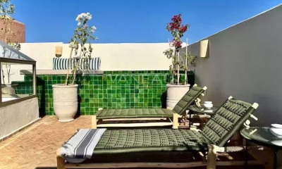 Magnifique villa entièrement rénovée, située en deuxième ligne du prestigieux Al Maaden Golf Resort. Érigée sur un terrain de 1646m2, la villa propose une surface hors œuvre de 450 m2, parfaitement aménagée pour le confort et la détente. Elle dispose de 5 suites spacieuses, chacune avec sa salle de bain privative, assurant un espace intime pour chaque occupant. Les espaces de vie comprennent un double salon et une salle à manger lumineuse, idéaux pour recevoir, ainsi qu'une double cuisine, parfaitement équipée. Un office et une chambre de personnel sont également disponibles, garantissant un service optimal. Côté bien-être, la villa propose une salle de sport privée et une magnifique piscine extérieure, entourée d'un jardin soigné. Un parking est à disposition pour vos véhicules. Cette villa est une opportunité unique pour profiter du cadre exclusif d'Al Maaden, à quelques minutes du centre de Marrakech, dans une résidence sécurisée et parfaitement entretenue.