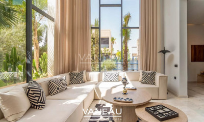 À 25 minutes du centre-ville de Marrakech, proche des golfs Samanah et Fairmont Royal Palm, très belle propriété de style oriental de 600 m² habitables édifiée sur un parc arboré d'un hectare. Réception avec salon cheminée, salle à manger et salon bibliothèque, 3 chambres en rez-de-chaussée avec chacune sa salle de bain et terrasse privative, à l'étage une suite supplémentaire ainsi qu'une terrasse aménagée face aux montagnes de l'Atlas. À l'extérieur, un pool house et un pavillon d'invités avec une 5 -ème chambre. Piscine chauffée. Chauffage central. Nombreuses cheminées. Logements du personnel. Décoration raffinée et vue époustouflante sur les montagnes de l'Atlas.