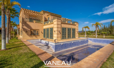 Impressionante villa de plain pieds de 460m2 construite sur un terrain de 1650m2 qui se distingue par son design épuré et ses espaces généreux, créant un cadre de vie exceptionnel. Ses 4 suites lumineuses, dont une suite principale, ses salles de bains modernes ainsi qu’une chambre de service sont complétées par une cuisine haut de gamme. Le salon spacieux, agrémenté de baies vitrées coulissantes à double vitrage, s’ouvre sur une superbe piscine et un jardin luxuriant, avec la somptueuse vue sur les montagnes de l’Atlas tout autour de la villa.