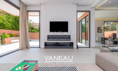 Située sur un vaste terrain de 2 300 m², cette villa élégamment conçue offre un cadre idéal alliant espace, confort et intimité. Avec 190 m² habitables, elle comprend 5 chambres spacieuses, chacune avec sa propre salle de bains, ainsi qu'une salle de bain supplémentaire pour les invités. Les extérieurs soigneusement entretenus et la piscine privée permettent de profiter pleinement des journées ensoleillées dans un environnement paisible. Points forts : 5 chambres avec salles de bains privatives Terrain de 2 300 m² Piscine privée Espaces extérieurs vastes et bien entretenus Parfaite comme résidence principale sereine ou comme maison de vacances de luxe.