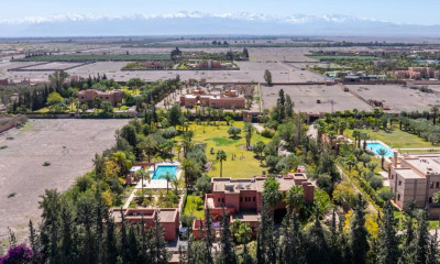 Située sur le prestigieux domaine golfique d’Al Maaden à Marrakech, cette propriété rare s’étend sur 2 800 m² en première ligne de golf, avec une surface construite de 1 000 m². Conçue avec des prestations réellement haut de gamme et un aménagement paysager signé par un paysagiste de renom, la villa offre une double orientation avec vue imprenable sur deux côtés du parcours ainsi qu’une terrasse panoramique 360° unique. Espaces intérieurs • 5 suites élégantes + 1 chambre supplémentaire • Double réception : grand salon et salon fumoir • Salle à manger conviviale • Cuisine moderne, office et buanderie Espaces extérieurs • Terrasse panoramique 360° avec vue sur golf et Atlas • Piscine chauffée 25 m x 4,5 m • Jardin paysager dessiné par un paysagiste reconnu . Pool house. • Parking pour 3 véhicules Les deux sous-sols distincts • Sous-sol 1 (technique & personnel) : 2 chambres pour le personnel, local technique, local chaudière. • Sous-sol 2 (loisirs & bien-être) : salle de cinéma privée, salle de sport équipée avec sauna et douche. Confort & équipements haut de gamme • Chauffage au sol • Climatisation gainable • Eau chaude solaire Cette villa d’exception représente l’un des plus beaux biens disponibles à Marrakech Al Maaden, idéale pour les amateurs de golf, d’élégance contemporaine et de confort absolu.