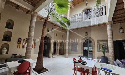 Située sur le prestigieux domaine d’Amelkis à Marrakech, cette villa contemporaine marie avec élégance modernité et inspiration ethnique, grâce à sa façade et ses murets en pierre sèche. Conçue sur un terrain de 1 800 m² en front de golf et développant 700 m² couvert, elle bénéficie d’un aménagement paysager signé par un architecte de renom et de prestations haut de gamme. Rez-de-chaussée • 3 suites indépendantes, chacune avec terrasse privative et jardin clos de murs en pierre sèche devant la salle de bain • 1 vaste suite parentale • Salon avec cheminée ouvert sur terrasse couverte • Salle à manger indépendante et cuisine équipée avec office • Piscine de 22 x 4 m avec pool house Étage (accessible par ascenseur) • 1 seconde suite parentale avec terrasse privative • Salon avec cheminée offrant une vue panoramique sur la piscine à débordement et le golf • Grande terrasse aménagée comprenant : • Bar • Piscine à débordement 10 x 6 m avec double fond en verre transparent (6 m), créant un effet spectaculaire et une vue unique sur le lac et le golf • Salon de plein air et espace transats pour profiter de la vue et du climat Sous-sol • Salle de cinéma (pouvant être aménagée en spa) au choix • 2 chambres pour le personnel • Buanderie, cellier et local technique • Très grande cour anglaise apportant lumière naturelle • Accès différencié : escalier extérieur réservé au personnel et ascenseur reliant les niveaux principaux pour les habitants Confort & équipements • Chauffage au sol • Climatisation gainable inverter par pièce • Deux piscines chauffées Piscine avec vue exceptionnelle sur l’Atlas et le golf Une villa rare à Marrakech, conjuguant design contemporain, authenticité de la pierre sèche, confort ultime et emplacement golfique privilégié, pensée comme une véritable résidence de prestige.