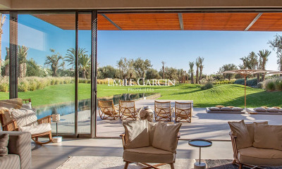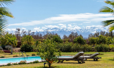 Villa d’Exception – Route de Tahanaoute, Marrakech Un hectare de nature, une vue à couper le souffle, une villa de plain-pied au charme oriental Située sur la route de Tahanaoute, face à la majestueuse chaîne de l’Atlas, cette somptueuse propriété s’étend sur un hectare d’arbres fruitiers et d’oliviers, offrant un cadre rare, authentique et préservé. La villa, entièrement de plain-pied, marie avec raffinement l’architecture orientale et le confort moderne, créant un lieu de vie chaleureux, spacieux et intemporel. Dès l’entrée, un vaste hall central mène à un salon baigné de lumière, ouvert sur le jardin luxuriant et la piscine scintillante, avec en toile de fond les montagnes de l’Atlas enneigées — un tableau vivant qui change au fil des saisons. La réception se prolonge par une élégante salle à manger ainsi qu’une grande cuisine conviviale, dotée d’un office attenant. Le sous-sol accueille un espace pratique et fonctionnel comprenant un grand garage, trois pièces pour le personnel, une laverie, une buanderie et un local technique. La partie nuit révèle une suite royale d’exception, comprenant double dressing, bureau, salle de bain, patio privatif et une chambre ouverte sur le jardin. Quatre autres chambres, chacune disposant de sa propre salle de bain ou d'une salle de bain partagée, complètent l’espace nuit, garantissant confort et intimité à tous les occupants. Quelques travaux de rafraîchissement permettront de sublimer encore davantage ce lieu d’exception, mais l’essentiel est déjà là : un site rare, une atmosphère unique et l’une des plus belles vues que Marrakech puisse offrir. Un havre de paix incomparable, parmi ce qui se fait de mieux dans la région.