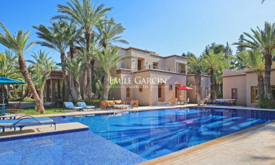 Idéalement située au sein du prestigieux Golf d'Amelkis, cette propriété d'exception incarne une interprétation raffinée de l'architecture marocaine, sublimée par l'emploi de matériaux nobles et un sens aigu du détail. Édifiée au cœur d'un parc paysager de 2.000 m², la villa développe environ 700 m² habitables répartis sur trois niveaux, offrant des volumes remarquables, une luminosité omniprésente et une parfaite harmonie entre les espaces intérieurs et l'environnement naturel. Chaque perspective a été pensée pour préserver l'intimité et magnifier la sérénité du lieu. Les espaces de réception, généreux et élégants, s'ouvrent sur les jardins et invitent à la convivialité. Le rez-de-chaussée accueille également une cuisine semi-professionnelle ainsi qu'une suite d'invités avec salle de bains, offrant un confort absolu. À l'étage, la suite principale, véritable havre privé, dispose d'un dressing, d'une salle de bains raffinée et d'une vaste terrasse offrant une vue dégagée sur les montagnes de l'Atlas. Deux chambres supplémentaires complètent ce niveau, ainsi qu'une bibliothèque d'exception, intégrant un espace bureau et un salon, installée sous une voûte architecturale au caractère unique. Le sous-sol offre de larges espaces de rangement, parfaitement intégrés aux fonctions de la maison. Dotée de prestations haut de gamme : ascenseur, hammam traditionnel, chauffage et climatisation. Cette demeure répond aux exigences d'un art de vivre luxueux et contemporain. Des espaces dédiés au personnel et aux invités assurent une organisation fluide, discrète et parfaitement maîtrisée. À seulement quelques minutes du centre de Marrakech, l'Amelkis Resort s'impose comme l'un des domaines résidentiels les plus prisés de la région, sécurisé et structuré autour de son parcours de golf de renommée internationale, offrant un cadre de vie rare, calme et verdoyant. Pour toute information complémentaire, veuillez contacter David Montérin au +212 6 71 43 72 27.