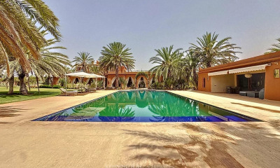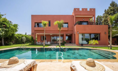 Superbe maison moderne emplacement unique à seulement quelques minutes des principaux golfs de Marrakech, et à moins de 15 minutes du centre-ville. Sur un parc d'un hectare, cette villa réalisée par un célèbre cabinet d'architecture offre une vue panoramique sur les montagnes de l'Atlas depuis toutes les pièces. Salon traversant ouvert d'un côté sur le bassin et la piscine et de l'autre sur un salon andalou avec fontaine, superbe salle à manger et bibliothèque avec cheminée. Elle comprend 7 suites dont 2 masters, un spa, une salle de sport, salle de cinéma, salle de jeux, cuisine professionnelle, de nombreux logements employés. Espaces extérieurs avec une grande terrasse couverte, une piscine à débordement chauffée de 30x4 m, un espace repas avec barbecue et four à bois et terrain de pétanque. Construite avec un confort premium, isolation complète, chauffage au sol avec chaudière biomasse et climatisation centralisée. La maison dispose de l'eau de ville, puits avec traitement anti calcaire et anti bactérien, poste électrique privé, panneaux solaire, construite aux normes parasismiques avec garantie décennale. Éclairage et arrosage automatique. Parking fermé pour 3 voitures avec borne électrique.