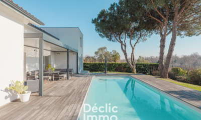 Situé dans une impasse paisible du Haut Bouliac, ce projet immobilier offre une opportunité rare dans un environnement privilégié. Le terrain de 2 500 m², en retrait de la voie publique, bénéficie d’une vue imprenable sur un bois protégé, apportant calme et intimité à la future résidence. La bâtisse, d’environ 220 m², est orientée sud-ouest, permettant de profiter pleinement de la luminosité naturelle toute la journée. Conçue pour accueillir une vie de famille harmonieuse, cette maison mise sur des espaces généreux et une orientation optimale. Le séjour spacieux, approchant les 60 m² et 3m30 de hauteur sous plafond, s’ouvre sur une terrasse sans vis-à-vis, idéale pour recevoir ou se détendre en toute intimité. De là, on accède à une piscine pour profiter pleinement du cadre naturel. L’agencement comprend un bureau fermé avec vue sur le forêt, permettant d’y télétravailler, quatre chambres équipées de salles d’eau, ainsi qu’une suite parentale dotée d’une salle de bains et d’un dressing, garantissant confort et espace privé pour chacun. Un double garage vient compléter cette proposition, offrant stationnement pratique et sécurisé. Ce projet permet de concevoir une résidence raffinée, lumineuse et en harmonie avec son environnement, dans un secteur prisé du Haut Bouliac, où confort et nature se rencontrent pour une qualité de vie exceptionnelle. La valeur du terrain est de 650 000 € (frais d'agence à la charge de l'acquéreur inclus). La mission d'architecte, la construction et son suivi sont chiffrés à 670 000 €. Contactez-nous dès aujourd'hui pour obtenir de plus amples informations sur ce projet.