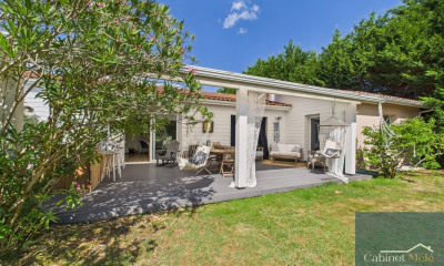 À PROXIMITÉ DE LATRESNE VILLA DE CHARME AU CŒUR D'UN PARC DE 2 HECTARES À seulement 8 minutes de la rocade et 10 km de la gare de Bordeaux Saint-Jean, DORÉMUS IMMOBILIER vous propose cette authentique chartreuse, nichée dans un environnement naturel rare et vallonné, sur les coteaux très prisés de la rive droite. Entièrement de plain-pied, cette belle demeure s'ouvre sur une vaste pièce de vie de 51 m², baignée de lumière grâce à son exposition plein sud, et agrémentée d'une grande cheminée au charme indéniable. Vous profiterez également d'une cuisine dinatoire spacieuse et entièrement équipée, idéale pour recevoir en toute convivialité. Côté nuit, la maison dispose de trois chambres, dont une suite avec salle d'eau privative, ainsi qu'une salle de bains indépendante. Un grand garage de 53 m² et une cave en sous-sol complètent ce bien aux prestations soignées. Le tout est implanté sur un parc arboré d'environ 2 hectares, offrant calme, intimité et cadre bucolique à seulement quelques minutes de Bordeaux. Un bien rare et plein de charme Coup de cœur assuré.