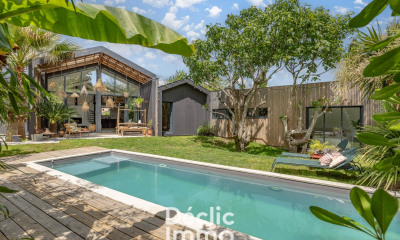 CARIGNAN DE BORDEAUX - PROCHE LATRESNE - IMMOBILIER RIVA vous présente en exclusivité cette jolie villa de plein-pied construite en 2020 de 175 m² située dans un environnement calme et recherchée, avec une belle vue dégagée, exposée au sud. Idéale pour famille nombreuse avec ses 4 CHAMBRES (de 12 à 17m²) et 1 BUREAU (11m²), elle propose aussi un grand salon + cuisine de 66 m² donnant sur une terrasse en bois et la piscine au sel et chauffée de 9 x 3m. 2 chambres ont leur propre salle d'eau, les 2 autres s'en partagent une autre. Cellier de 8m². Garage de 16m². Chauffage réversible gainable air/air par pompe à chaleur, ballon d'eau chaude thermodynamique c'est-à-dire qui intègre une pompe à chaleur donc plus économique qu'un chauffe-eau standard. Aucune travaux à prévoir. Rare dans la secteur.
