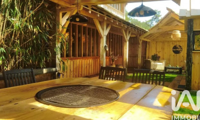 L'agence CADRE D'ENVIES Lacs et Océan vous présente cette charmante maison à l' esprit cabane de 139m2 environ idéalement située à Lacanau dans le secteur très prisé de LONGARISSE à 100m des plages de sable blanc du Lac, RARE sur le marché! Implantée dans un cadre paisible et verdoyant, cette maison offre un cadre de vie exceptionnel entre Lac et forêt, idéal pour les amoureux de nature et de grands espaces. Ici tout est réuni pour profiter pleinement d'un quotidien paisible dans une ambiance conviviale en famille ou ressourçante à deux. Votre future maison est composée de deux entités : Dans la maison principale, vous trouverez une belle pièce de vie orientée plein Est prolongée par une grande terrasse en bois puis le jardin, une cuisine séparée, 4 chambres, 2 pièces d'eau et Toilettes. La dépendance de 19m2 est composée d'un bel espace de vie, d'une mezzanine, d'une pièce d'eau et de toilettes. Autres atouts évidents : Un grand garage de plus de 20m2 et un abri bois. Vous serez séduit par l'ambiance singulière de ce lieu superbe ! A DECOUVRIR ABSOLUMENT ! DPE : C (130) GES : A (4) Prix honoraires d'agence inclus : 847 600 € Honoraires d'agence : 4% TTC à la charge de l'acquéreur Soit prix net vendeur : 815 000 € Contactez Céline MOREL (Agent commercial RSAC 932 668 759) Les informations sur les risques auxquels ce bien est exposé sont disponibles sur demande ou sur le site Géorisques : (4.00 % d'honoraires TTC à la charge de l'acquéreur.)