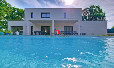 NOUVEAUTE UNIQUE ET RARE PROCHE DE LIBOURNE. Découvrez Cette Villa d'Exception 200m² sur une parcelle de 1724m², pensée avec raffinement et élégance avec toutes les commodités, au calme dans un environnement verdoyant. Vous serez séduit dès l'entrée par une vaste pièce de vie 90m², comprenant un salon et une salle à manger lumineuse est harmonieusement complétée par un poêle à bois, une cuisine ouverte bien équipée agrémentée d'un îlot central, son cellier attenant, une chambre, toilette séparé, une chambre agencée en bureau 21m². Agréable partie nuit s'articulant d'une suite parentale avec salle d'eau/toilette séparé/dressing, 2 belles chambres avec placards, salle de bains indépendante. L'extérieur bénéficie d'une grande terrasse en bois, une pergola, une cuisine d'été, une piscine chauffée (9x4), un abri de jardin, un abri bois, un atelier peinture, un carport 2 places. Son emplacement, ses volumes, ses nombreuses prestations font de ce bien un produit rare sur le marché actuel ! Les +++ - Sous garantie décennale - Pompe à chaleur et Climatisation - Volumes, exposition, luminosité - De plain-pied, distribution fluide et fonctionnelle - Prestations qualitatives - Excellent état - Aller à la gare à pied Honoraires inclus de 3.96% TTC à la charge de l'acquéreur. Prix hors honoraires 480 000 euros. Classe énergie A, Classe climat A. Montant moyen estimé des dépenses annuelles d'énergie pour un usage standard, établi à partir des prix de l'énergie de l'année 2021 : 2000.00 euros. Date de réalisation du DPE : 14-10-2020. Les informations sur les risques auxquels ce bien est exposé sont disponibles sur le site Géorisques : georisques.gouv.fr. Votre conseiller PORTBAIL IMMOBILIER : Sandrine GUIET Agent commercial (Entreprise individuelle)