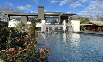 Saint Aubin de Médoc - Pinsoles Venez découvrir dans notre agence Century 21 Kadima cette magnifique villa de 7 pièces totalisant 178 m² habitables située dans un environnement recherché en deuxième ligne face à la forêt. Entourée d'une parcelle de 1489 m², cette maison contemporaine, parfaitement entretenue, construite en 2003 propose des prestations et des finitions de qualité. Après avoir franchi l'entrée, vous serez séduits par sa pièce de vie de plus de 57 m² avec sa cuisine ouverte. La pièce est climatisée et la luminosité y est omniprésente tout au long de la journée avec un accès vers la terrasse couverte. La vue sur la piscine et le jardin paysagé est très reposante. Vous apprécierez en suivant l'espace bureau de 10,85 m². La cuisine ouverte est aménagée et équipée d'électroménager de qualité. Vous aurez accès à un cellier buanderie ainsi qu'à un double garage attenant de 42 m² avec portes motorisées. Un studio attenant offre à vos amis ou à votre famille un espace de vie totalement indépendant. La maison comprend au rez-de-chaussée une suite parentale avec son dressing indépendant et une salle de bains complète. Un escalier en pierre mène à une mezzanine, deux chambres supplémentaires, des WC et une salle d'eau. À l'extérieur, vous profiterez d'une grande terrasse en pierres romanes donnant accès à la piscine à l'abri des regard. Une cuisine d'été vous permettra de passer d'agréables moments en famille ou entre amis. Cette maison coup de coeur offre un cadre de vie idéal pour les amoureux de la nature et le confort d'une maison familiale en parfait état. Coup de coeur assuré ! Appelez-nous pour organiser une visite. Le Quartier : Transports à proximité : Ligne 83 à 150 m et ligne G à 3,4 km. Ecoles à proximité : Maternelle et Elémentaire Jean De la Fontaine à 3,9 km. Collège à proximité : Collège Léonard de Vinci à 5,4 km Lycée à proximité : Lycée Sud Médoc à 5,4 km Commerces et Services à proximité : Centre-ville à 3,9 km de Saint Aubin de Médoc et de Saint Médard en Jalles. Zone de Picot (Intermarché - Station essence - Bricomarché - halles primeur) à 4 km Accès direct aux pistes cyclables Bordeaux - Lacanau Agence immobilière Century 21 Kadima, Estimation - Vente - Achat - Location - Gestion locative - Patrimoine - Investissement Immobilier ancien et neuf Maisons - Appartements - Immeubles - Échoppes - Lofts - Terrains - Garages Parkings- Murs commerciaux Saint-Médard-en-Jalles - Saint-Aubin-de-Médoc - Le Haillan - Salaunes - Sainte Hélène - Le Taillan Médoc - Martignas sur Jalle - Saint Jean d'illac - Bordeaux - Bordeaux Caudéran Prix : 849000.0 euros, Honoraires charge vendeur. Bien proposé par Rémi BLANC EI, agent commercial (RSAC 453113748)