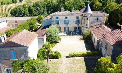 À 1 h au nord de Bordeaux, dans les prestigieux vignobles des côtes-de-Bourg, un domaine viticole avec son château, son chai, ses dépendances, son parc et sa piscine. Implantée au milieu des vignes, la propriété, étendue sur plus de 20 ha, est constituée d'un ensemble de six bâtiments : un château, d'une superficie de 450 m², un chai, un hangar, employé au stockage et à l'étiquetage des crus, un garage et espace de vente, des chambres d'hôtes, enfin un grand bâtiment de stockage à restaurer. L'accès au domaine s'effectue par une petite route de campagne qui serpente à travers les vignes. Bâti au cours de périodes successives, le château est reconnu domaine viticole depuis 1868. La partie arrière de la bâtisse, de style 17e s., est la plus ancienne alors que la façade principale est à l'image de celles des maisons de maître du début du 19e s. : bâtie en pierre de taille, symétrique, sobre et raffinée. La composition architecturale est certainement la conséquence de travaux de modernisation ou d'agrandissement entrepris au cours du 19e s. L'actuel propriétaire a modernisé le domaine et personnellement dirigé les travaux de rénovation du chai et du logis principal. Il a également revu entièrement le mode d'entretien et d'exploitation de la vigne pour produire ses crus.