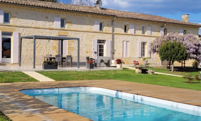SAINT ÉMILION - MAISON DE MAÎTRE - DÉPENDANCES - 5HA À seulement 12 kilomètres de Saint-Émilion, cette ancienne propriété viticole offre un cadre rare, entre charme patrimonial et potentiel remarquable. Dominant les vignes, la maison de maître du XIXe siècle d'environ 300 m² a conservé ses éléments d'époque : moulures, parquets, cheminées.. Au rez-de-chaussée, trois réceptions lumineuses, une cuisine, une chaufferie donnant accès à un vaste chai et au cuvier. À l'étage : cinq chambres, deux salles d'eau, un grenier aménageable menant à la tour offrant une vue spectaculaire sur le vignoble. Une maison indépendante complète ce bien rare. Nombreux espaces à réinventer : cave, chai, grenier.. pour projet familial ou oenotouristique d'envergure. - On aime : la proximité immédiate de Saint-Émilion, le caractère intact de la demeure, la vue plein sud et le potentiel exceptionnel. Contact : M. Florian Levalois, E.I. RSAC 841 674 831- 06 18 79 20 93 pour Bordeaux Sotheby's International Realty. Immobilier de prestige, experts en propriétés de Luxe et biens d'exception, à Bordeaux et ses environs.