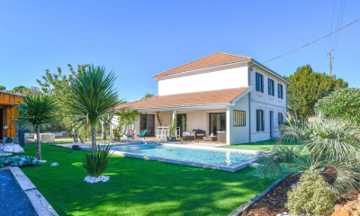 iad France - Delphine Garcia vous propose: Maison d'architecte située à Salles et nichée sur une magnifique parcelle paysagère d'environ 2800 m2. Cette somptueuse maison d'architecte lumineuse d'environ 250 m² offre un cadre de vie exceptionnel pour les amateurs de design, de confort et de nature. Cette propriété d'exception saura vous séduire par son élégance et ses prestations. Dès l'entrée, vous serez accueillis par un espace de vie lumineux comprenant un salon spacieux, une salle à manger conviviale et une cuisine ouverte entièrement équipée. Le tout s'ouvre sur une magnifique terrasse sans vis-à-vis. Chaque espace a été pensé pour offrir confort et bien-être à ses occupants. Vous trouverez, répartis sur 2 niveaux, 5 chambres (dont une suite parentale), un bureau et une mezzanine pouvant être dédiée à un espace jeux ou une bibliothèque. Vous apprécierez également le balcon avec une vue sur la propriété et la forêt. Baignée de lumière naturelle, cette demeure est agréable tout au long de la journée. À l'extérieur, vous trouverez un carport, une terrasse, une piscine ainsi qu'un aménagement paysager soigné pour profiter de la nature environnante. Cette maison d'architecte est une véritable pépite à Salles, offrant un parfait mélange entre design contemporain, confort absolu et cadre de vie privilégié. Ne manquez pas l'opportunité de visiter ce bien d'exception ! Honoraires d'agence à la charge du vendeur. Information d'affichage énergétique sur ce bien : classe ENERGIE C indice 155 et classe CLIMAT B indice 8. Les informations sur les risques auxquels ce bien est exposé, y compris l'obligation légale de débroussaillement, sont disponibles sur le site Géorisques : La présente annonce immobilière a été rédigée sous la responsabilité éditoriale de Mme Delphine Garcia mandataire indépendant en immobilier (sans détention de fonds), agent commercial de la SAS I@D France immatriculé au RSAC de BORDEAUX sous le numéro 984376533, titulaire de la carte de démarchage immobilier pour le compte de la société I@D France SAS.