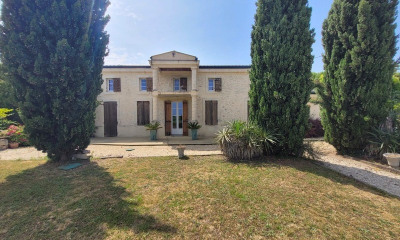 Nous vous proposons cet ensemble immobilier de plus de 300m² habitables, aux prestations haut de gamme, idéalement situé dans la charmante commune de Vertheuil. La propriété se compose d’une maison principale d’environ 147 m² habitables, comprenant une entrée desservant une spacieuse pièce de vie avec cuisine ouverte aménagée et équipée, un cellier/buanderie, une salle d’eau, un WC indépendant et trois chambres. À l’étage, vous découvrirez une suite parentale avec dressing, salle de bains et WC. Chaque pièce est équipée d’un système de climatisation réversible. Des panneaux solaires viennent compléter les prestations en assurant l’alimentation électrique du bien. À l’extérieur, vous profiterez d’une agréable terrasse avec piscine chauffée, offrant une vue dégagée sur un jardin paysagé. La propriété comprend également plusieurs dépendances : – Quatre appartements d’environ 40 m² chacun, générant une rentabilité locative existante, dont un actuellement exploité en location saisonnière. – Une dépendance supplémentaire d’environ 50 m². Un double garage d’environ 60 m² complète l’ensemble. Cette magnifique propriété, alliant confort, standing et potentiel de rentabilité, saura vous séduire par la qualité de son environnement et de son emplacement. Idéalement située à 10 minutes de Lesparre-Médoc (ville dynamique avec hôpital, écoles, commerces et gare), à 30 minutes des plages océanes et à 50 minutes de l’aéroport de Bordeaux-Mérignac, ce bien rare vous invite à venir découvrir un cadre de vie privilégié.