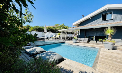 Splendide villa au calme, au cœur du CAP FERRET, à deux pas de la plage, du marché et des commerces. Véritable lieu de rêve pour des vacances réussies ! En parfait état, elle n'attend plus que vous. Dès l'entrée vous serez séduits par sa luminosité, ses prestations, et ses volumes ; vaste salon/séjour traversant avec cuisine us entièrement équipée ; cinq chambres avec chacune sa salle de bains vous assureront tout le confort nécessaire en préservant l'intimité de chacun. L'Extérieur, tout aussi accueillant, vous propose différentes terrasses qui vous permettront de profitez du soleil tout au long de la journée ; très belle piscine pour la détente ; un boulodrome pour de jolis moments de partage. Un sous sol de rangement, une buanderie ainsi qu'un cabanon de jardin complètent ce bel ensemble implanté sur une parcelle paysagée de 940m2. contact : claudine GAUDRON