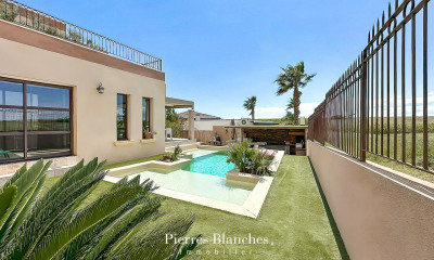 Ce domaine d'exception se situe dans un environnement naturel préservé, entre Méditerranée et arrière-pays languedocien. La propriété en quelques chiffres : _ 765 m² habitables dans une demeure principale de charme (8 chambres) _ 375 m² de salle de réception entièrement équipée _ 3 gîtes indépendants (32, 92 et 56 m²) _ Piscine de 6x14 m au cœur d'un parc paysager _ 24 700 m² de terrain, dont 1 865 m² constructibles _ 39 hectares de vignes (395 184 m²) cultivés, avec plusieurs cépages (infos sur demande) _ Installation de panneaux photovoltaïques contribuant à l'autonomie énergétique du domaine À usage privé et professionnel Idéal pour projets œnotouristiques, événementiels ou hôteliers Atouts supplémentaires Infrastructure en excellent état Grande capacité d'accueil Potentiel agricole, touristique et patrimonial important Démarche écoresponsable grâce à la production d'énergie solaire Proximité A9, TGV, aéroport, plages Dossier complet, rentabilité, plans et photos sur demande tél : O4 67.09.70.14 Visite virtuelle sur demande Opportunité rare