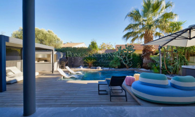 Laforêt Montpellier Sud vous propose cette belle maison de plain-pied, construite en 2007, et entièrement rénovée ,situé à Villeneuve-Lès-Maguelone , à 5 mn de la plage et à 10 mn de Montpellier . Elle se compose de la manière suivante : - Une cuisine moderne, aménagée et équipée, ouverte sur un séjour lumineux de 49 m² . - Une suite parentale avec dressing et salle d'eau privative - Deux belles chambres spacieuses - Un bureau - Une grande salle de bains avec double vasque, douche et baignoire - Un garage attenant de 29 m² . Le tout sur une parcelle de 400 m² avec jardin , terrasse , et piscine . La propriété est équipée d'un système de climatisation gainable réversible dans toutes les pièces . N'attendez plus et contactez nous pour venir visiter cette villa qui aura tout pour vous plaire . Délégation de mandat: Informations sur les honoraires disponibles en agence. Melvin ROUICHI (EI) Agent Commercial - Numéro RSAC : - .