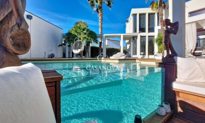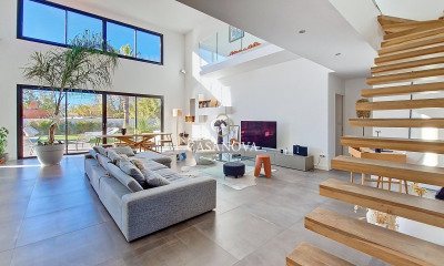 Dans un quartier calme et recherché du Grau d'Agde, cette villa contemporaine de 2022 incarne le confort moderne et la qualité dans les moindres détails. Dès l'entrée, la lumière traverse les volumes généreux. La pièce de vie de plus de 60 m² accueille un salon chaleureux, un espace repas convivial et une belle cuisine de marque allemande, entièrement équipée et pensée pour le quotidien. Le rez-de-chaussée abrite une première suite parentale avec dressing et salle d'eau, idéale pour vivre de plain-pied. À l'étage, trois chambres supplémentaires dont une seconde suite parentale, une salle d'eau et un WC indépendant. Côté extérieur, l'ambiance est soignée et harmonieuse : une piscine chauffée avec rideau électrique, une terrasse en bois ipé, une pergola bioclimatique sur mesure, un cabanon de rangement modulable en cuisine d'été, des allées gravillonnées et un béton imprimé à l'arrière agrémenté de plantations. Le jardin paysagé, parfaitement entretenu, invite à la détente autour du lit baliné ou des espaces repas sans vis-à-vis. Le garage est isolé, carrelé et chauffé, à l'image du reste de la maison. Climatisation gainable, ballon thermodynamique, panneaux solaires, volets roulants électriques et aspiration centralisée complètent la liste des prestations haut de gamme. Une assurance dommage-ouvrage toujours valide garantit la solidité et l'étanchéité de la construction, assurant une totale tranquillité d'esprit. Visitez cette maison depuis votre canapé grâce à la visite virtuelle disponible sur notre site internet ou rencontrons-nous dans notre agence immobilière Spotissime d'Agde et du Cap d'Agde. Informations complémentaires : Prix de vente : 880 000 euros Honoraires TTC à la charge du vendeur Surface CARREZ : 142 m² Taxe foncière : 2 700 euros