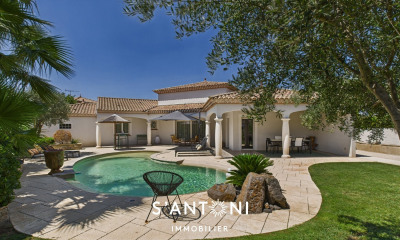 PIERRES-BLANCHES IMMOBILIER Le Grau d'Agde - PBI Collection L'invitation de ce jour est de vous faire découvrir, cette superbe villa de 270 m² de surfaces habitables à l'architecture résolument contemporaine. Lovée dans un écrin vert de palmiers cinquantenaires, cette propriété a trouvé sa place au cœur d'une végétation importée et positionnée avec soin sur 620 m² de terrain clos. Dès la large porte vitrée franchie, c'est une pièce de réception spacieuse et lumineuse, ouverte, où le salon, la salle à manger et la cuisine sont connectés. Cet ensemble à vivre déploie généreusement ses courbes vers une vaste terrasse ombragée nous exposant une vue vers un panorama où la nature s'expose comme le luxe essentiel. Réalisée dans un pur style contemporain, l'ensemble se voit sublimée par une décoration délicate au style néanmoins affirmé où tout a été pensé afin d'apporter confort, élégance et sécurité. Dans une logique de mise en scène travaillée favorisant la douceur d'espaces feutrés faits de blancs crémeux et gris perle, parsemés par quelques points de hauteurs vitaminés, l'harmonie des volumes et la luminosité omniprésente nous ancrent définitivement dans un environnement de bien-être. La sphère privée du rez-de-chaussée se voit sublimée par une décoration raffinée choisie avec précision, elle s'articule en une master bedroom de plus de 37 m² avec salle de bains et dressing. Pour monter à l'étage, nous empruntons un escalier, véritable œuvre d'art graphique suspendue grâce à un système de fixation intelligent et innovant. Nous découvrons deux suites avec salles d'eau privatives et une chambre de plus de 20 m². Ce sentiment d'espace, d'ouverture et de lumière nous suit autour de ce repaire doux et poétique nous transportant dans un univers d'excellence incarné par les valeurs du luxe. À l'extérieur, l'architecte a permis à la végétation et aux arbres de prendre une place prépondérante tout en structurant les lignes de construction selon l'esprit du littoral et de ses plages. Dès qu'arrivent les beaux jours, la maison prend alors une nouvelle dimension où la terrasse devient un liteau incontournable et idéal pour profiter des rayons du soleil tout au long de l'année. Le jardin protège en son creux d'opaques senteurs méditerranéennes au sein duquel se tisse la piscine de 8 mètres de long venant ajouter un relief supplémentaire à ce tableau organique qui éveille nos cinq sens. La lumière dorée du Sud et sa propension à savoir capter chaque rayon se diffuse à l'ombre des feuilles palmées. Tout en nous offrant un confort de vie indiscutable, le design unique et durable permet à cette propriété de s'intégrer parfaitement à son environnement. Le Plus : La maison est vendue meublée. Prestations luxueuses et ultramoderne. Domotique intégrale. Garage isolé. Situé à 50 mètres de la plage. Le climat privilégié du littoral méditerranéen nous permet de jouir de 300 jours d'ensoleillement par an. Notre Avis : Nature Plurielle ® Une déclaration de conception étonnante au cœur d'une scénographie fabuleuse. Cette réalisation architecturale est une ode à la beauté singulière et plurielle de la Méditerranée. 'Une Vision Authentique et Contemporaine de l'Immobilier de Luxe.' Franck Ballester ® TOUTE INSPIRATION, MODIFICATION, REPRODUCTION EST INTERDIT - REGISTERED TRADEMARK Dossier sur références Contact +33 (0)4 67 70 07 87
