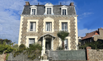 A proximité de la place du Marché - Cette superbe maison en pierre a bénéficié d'une rénovation et d'une extension conservant le charme de l'ancien et le confort moderne. La maison est baignée de lumière avec ses grandes ouvertures donnant sur un jardin intimiste. Le rez-de-jardin comprend le séjour avec des baies, une cuisine aménagée et équipée avec office. Une salle de jeux (ou chambre) est en sous-sol avec une salle de douches pour les retours de plage. Entre le 1er et 2ème étage, 4 chambres sur parquet et 2 salles de bains / salles d'eau.
