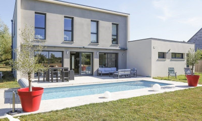 CONTEMPORAINE D'EXCEPTION PARC 3 200 m² - PISCINE 9 X 3 M CHAUFFEE - TERRASSE Cette contemporaine de 2019, exposée SUD-OUEST a été réalisée dans des matériaux de haut de gamme, offrant une installation de chauffage au sol par géothermie, qui vous assure une consommation d'énergie très satisfaisante malgré une piscine chauffée dès le printemps. La piscine chauffée (pompe à chaleur) est un atout supplémentaire pour les soirées d'été avec une terrasse très élégante. Elle développe 247 m², sans compter une surface garage de 50 m², le parc ainsi que la maison ont été édifiés dans un enivrement au calme sans nuisance sonore et sans vis à vis, restant à 5 mn des grands axes autoroutiers, à 2 km du village d'Artannes, 5 km de Monts et 17 mn de l'hyper centre de Tours. Cette contemporaine a été très bien pensée dans sa distribution apportant un espace de vie pour chacun de ses occupants. Elle s'ouvre sur un vaste hall d'entrée desservant une réception de 85 m² comprenant une salon et séjour ainsi qu'une cuisine semi ouverte de belle facture plein Sud face à la piscine, l'été la demeure est entièrement ouverte par de grandes baies alu sur la partie détente de l'extérieur abritée par deux grands stores bans sans oublier un cellier conséquent très pratique au quotidien suivi par une lingerie chaufferie et une salle de sport, en rez-de-chaussée chambre parentale de 32 m² offrant une grande chambre, un dressing et une élégante salle d'eau. Au premier niveau large palier desservant 3 chambres de 14 et 15 m² et un bureau ainsi qu'une grande salle de bains et douche. Cette demeure est très agréable à vivre au quotidien, je vous conseille vivement une visite.