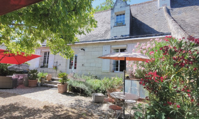 En périphérie immédiate de Tours, dans un quartier résidentiel, une maison de ville dans son jardin paysager, avec quatre chambres et un studio indépendant . Depuis une rue calme d'un quartier résidentiel, une longue allée mène au portail. Elle se prolonge jusqu'à la maison dont le pignon est percé de deux portes de garages, puis jusqu'à un large espace de stationnement, prolongé par un carport. La maison, à l'abri des regards, est orientée est-ouest et entourée d'un jardin aux divers espaces d'agrément. Planté de massifs fleuris, d'arbustes et d'arbres aux essences variées, la végétation a été choisie avec soin pour ses variations de couleurs au fil des saisons. Au rez-de-chaussée, une vaste pièce de réception divisée en un salon avec poêle à bois et une salle à manger est prolongée par une cuisine ouverte, largement éclairée par une porte-fenêtre avec accès à une terrasse. Une chambre avec garde-robe jouxte une salle de douche. Au premier étage, sous combles, le palier dessert trois chambres, une salle de bains et une garde-robe. Un studio indépendant a été aménagé au premier étage du garage.
